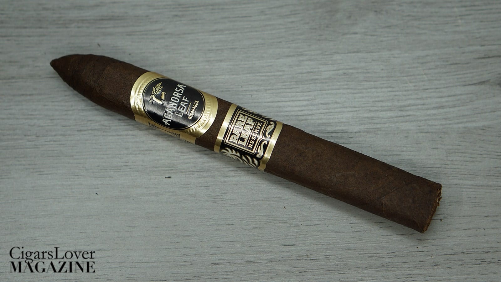 Aganorsa Leaf Rare Leaf Reserve Maduro Belicoso: the cold draw reveals aromas of clean tobacco. Once lit, the cigar opens with a mix of bread, cocoa, and roasted coffee.