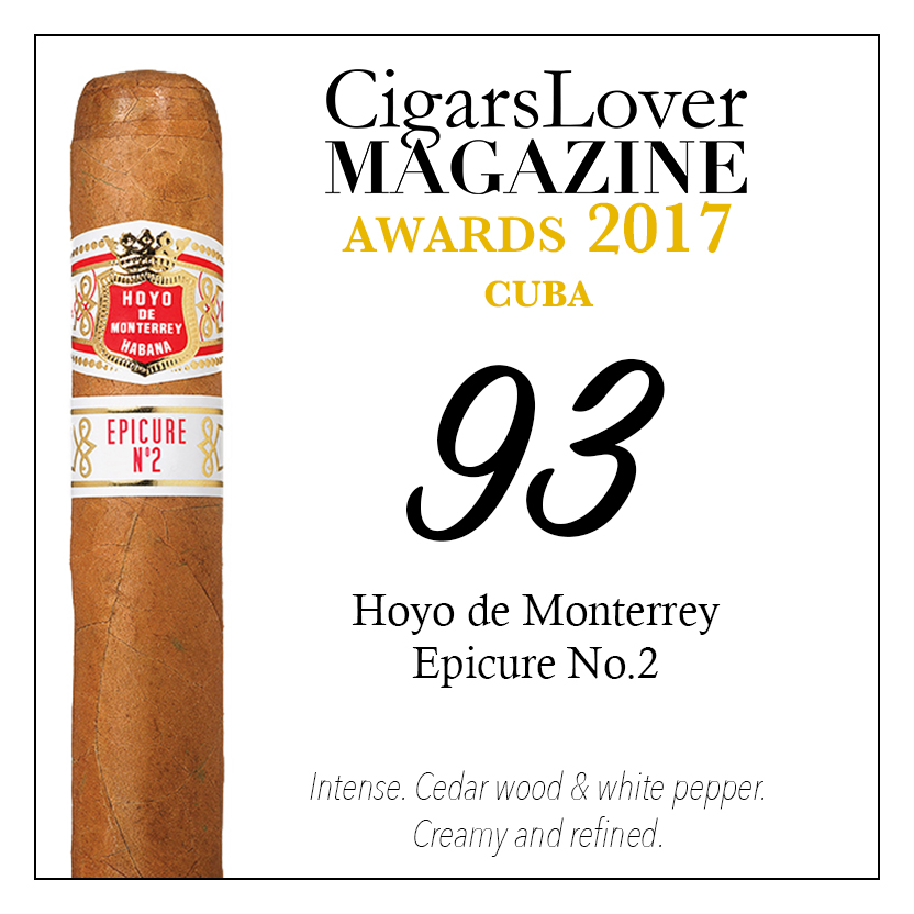 From the Cuban Revolution to nowadays, the Epicure No. 2 has been the Robusto of the Hoyo de Monterrey factory. Without any band at first, then with one and now with two, it is distinguishes itself from the the suave flavors of the brand, oriented towards a more masculine smoke. Strength is slightly over the medium (3,5/5). The smoke is sweet and starts out with notes of cedar and white pepper, followed by earth and piquant hints. Continuing, coffee beans get delivered, while the finale turns towards cocoa and chili spices, with herbs in the background, completing the aromatic bouquet. A smoke of great aromatic intensity and equipped with a pronounced evolution, to which a well structured bouquet is added. It exhibits an exceptional persistency and harmony. Creamy and elegant. Satisfying. |