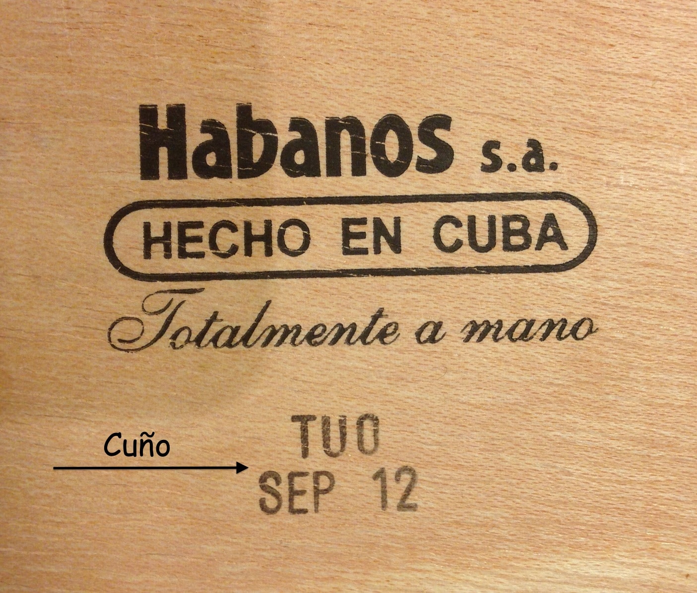 Cuño is a stamp that is usually on the bottom of the box.
