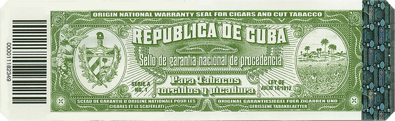 Starting from 1999, the warranty seal introduced new features. A serial code was added to the seal and the seal itself has a reaction if directly exposed to ultraviolet light. In fact, by illiminating it with UV rays, the coat of arms of Cuba will appear in its central part (the same coat of arms that can be seen on the seal with normal light, the one on the left side of the seal.