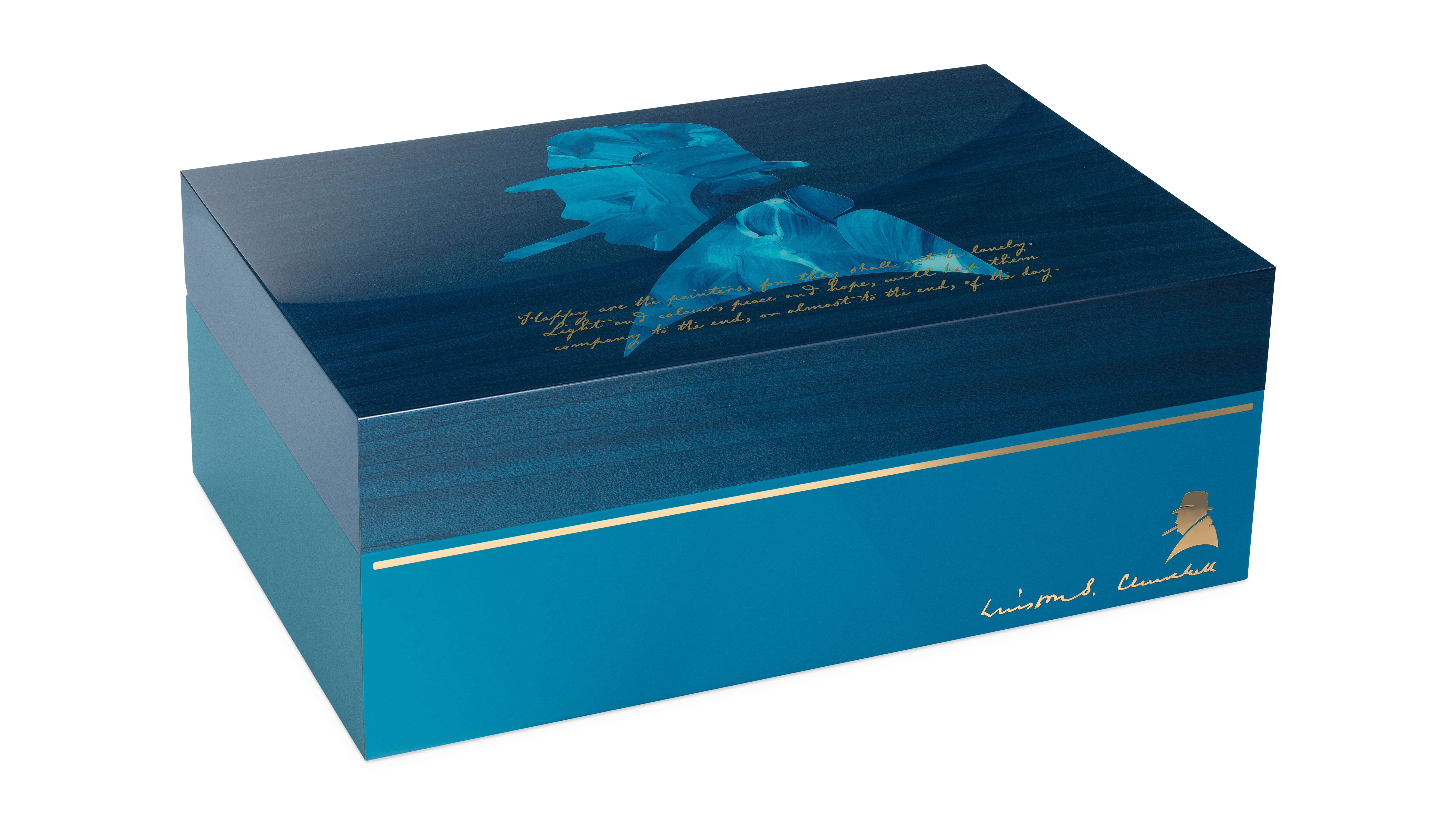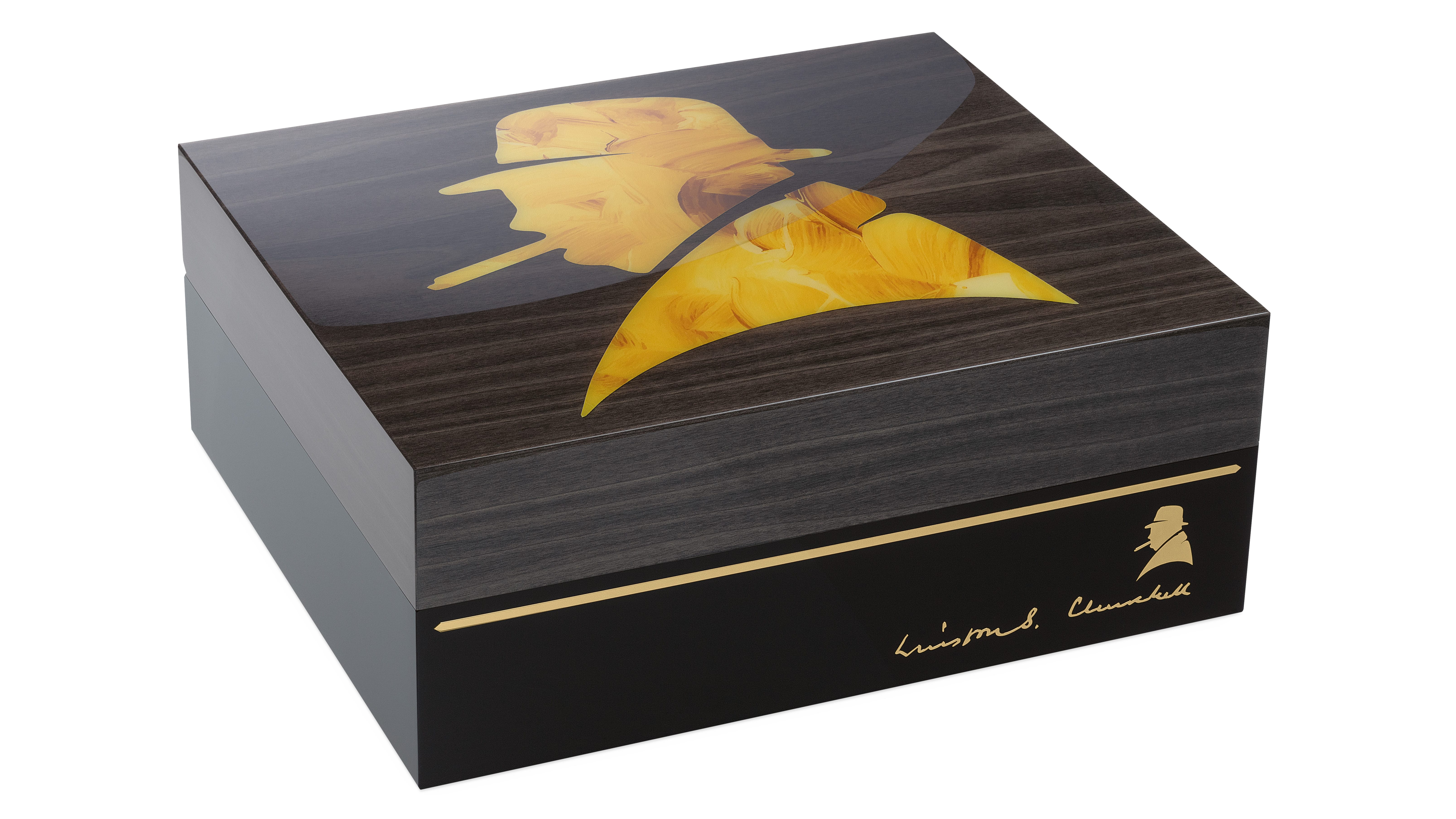 Alongside the cigar, Davidoff is launching two handmade humidors that reflect Churchill’s artistic flair. The lids feature his silhouette, designed to resemble brushstrokes, and are available in two sizes: the Primos for 25–35 cigars (pictured above) and the Ambassador for 70–80 cigars (pictured below).