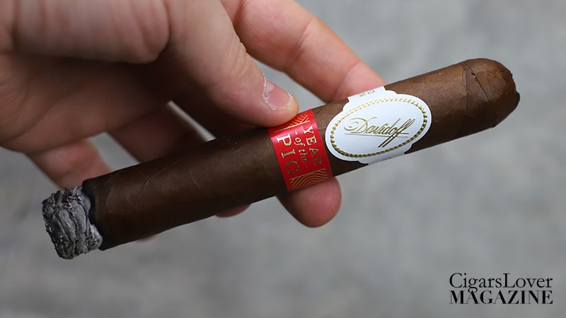 Davidoff Year of the Pig: unlit, it reveals hints of barnyard and cocoa. The opening brings notes of nuts, mainly walnut, to the palate.