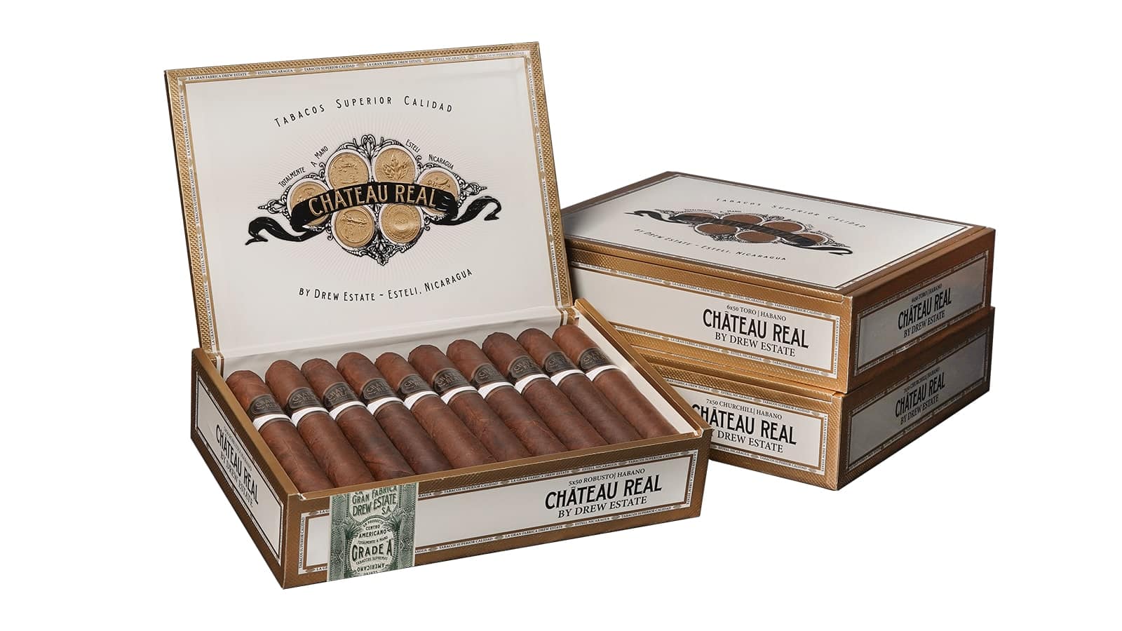 Drew Estate announces the exclusive launch of Chateau Real “Habano” for Cigars International. A Habano wrapper over an Indonesian binder and filler leaves from the United States and Nicaragua.