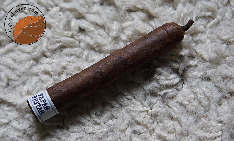The wrapper has a maduro color, with a pig-tail finish. It also has some tooth to it. The filling isn’t uniform and has some gaps present.