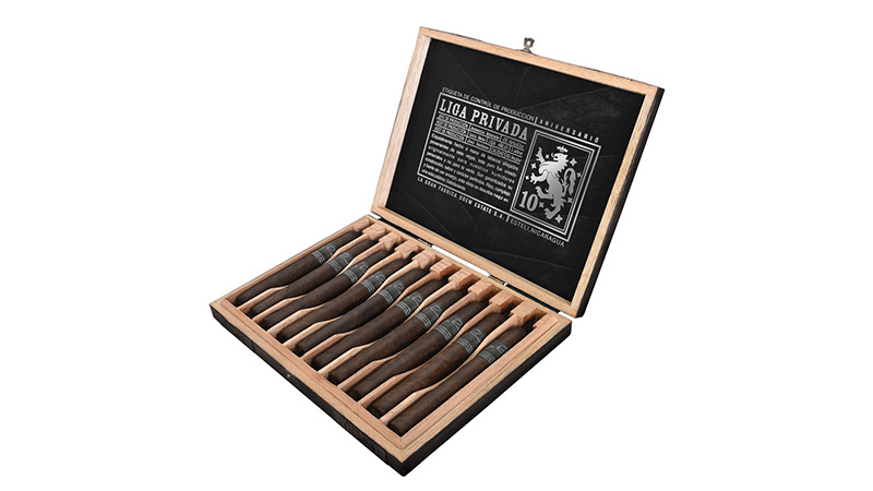 Packaged in 10 count boxes featuring a unique Cola de Pescado head, and Pies Tapado foot, the Liga Privada 10 – Year Aniversario toro, 152mm x 52, is available with an MSRP of $179.00 per box.