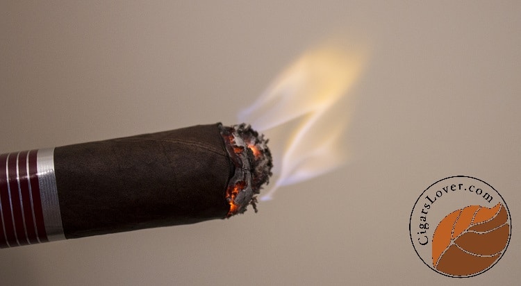 Alternatively, a cigar purge can also be done without flame with a simple blow that will push air through the body of the cigar, activate the combustion in excess and eventually eject the internal gases. The combustion of outgoing gases nevertheless offers the advantage to create a slight depression at the foot of the cigar that facilitates the whole process. Purging with a flame appears thus to be more efficient.