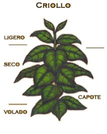 Plants of the Criollo variety have 12 to 14 leaves, which are divided into Ligero, Seco and Volado. The Volado leaves, located at the foot of the plant, offer a softer flavor since they are the oldest and most shaded ones; their task is to allow proper combustion. The more you go up to the top of the plant the more the leaves will be exposed to the sun, this translates into greater strength. The Seco is the intermediate level, it is a flavorful leaf, then we reach the Ligero, characterized by strength.