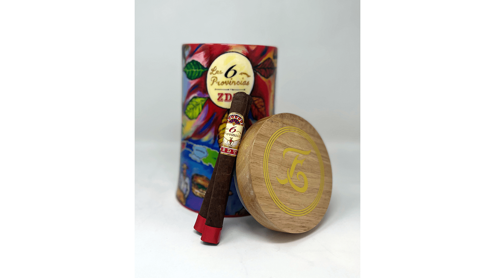 Once again, Espinosa Premium Cigars teamed with local Cuban artist Eden Gutierrez to collaborate on this project. The Las 6 Provincias ZDT is presented in a 20-count ornate ceramic jar, decorated throughout with artistic renderings of the tobacco-making process. The cigar is a box-pressed Short Churchill measuring 48 x 165 mm (6 1/2″), made with Nicaraguan fillers and binder and dressed in a Nicaraguan Corojo wrapper. Like most of the newer releases from Espinosa, the cigars are produced at the San Lotano Factory in Ocotal, Nicaragua.