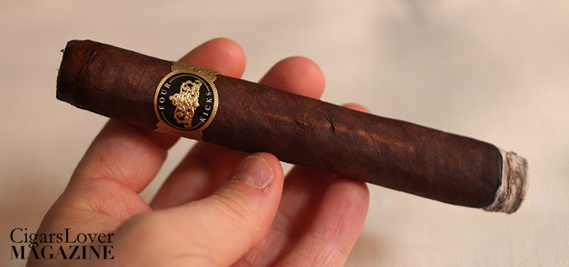 The Four Kicks Maduro Sublime is a cigar produced in the Dominican Republic. The blend is made of a Connecticut Habano wrapper enclosing Nicaraguan leaves as binder and filler.