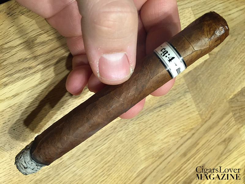 The middle section alternates pepper, earth and cocoa. Very creamy. Wood remains present, although not as pronounced as in the first third. Strength grows, becoming Medium – Full (4/5).