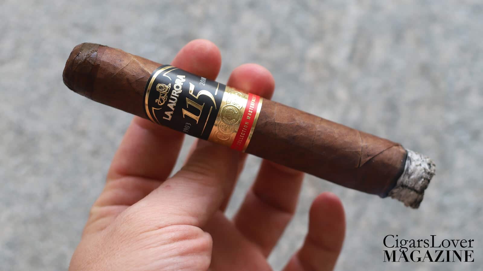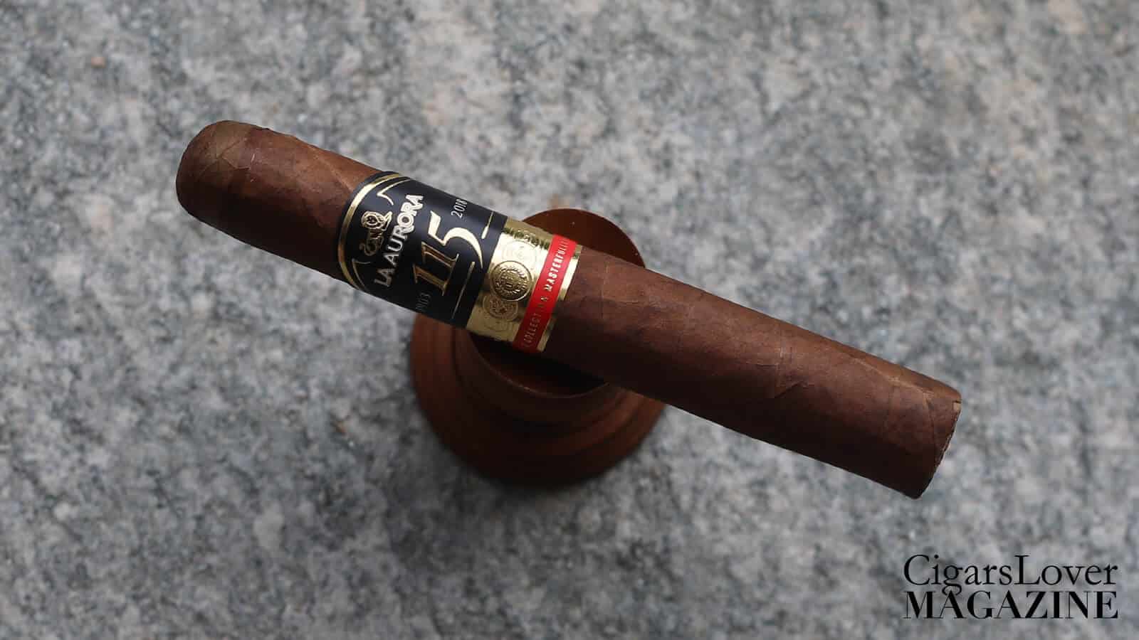 La Aurora 115th Anniversary Toro: the cold draw reveals scents of wood and hazelnut. The opening delivers roasted aromas.