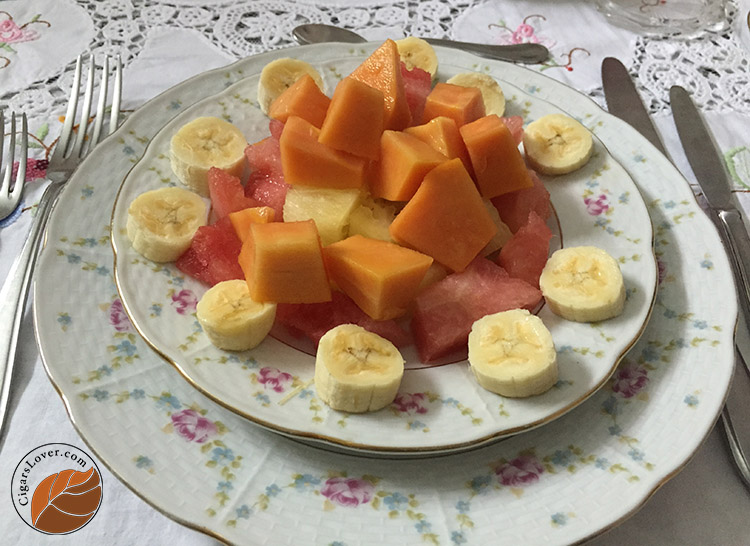 Il fuso orario ci ha fatto svegliare molto presto e dopo un’abbondante colazione cubana (frutta, omelette, pane con burro e miele, caffè e una spettacolare spremuta di aranciata fresca), accendiamo il primo sigaro: Siglo II. Fumata breve e quindi decidiamo di proseguire con un Lancero, un classico che, a nostro avviso, non si può non fumare proprio qui.