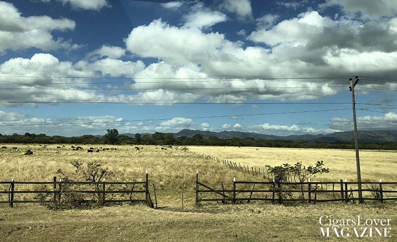 Il viaggio, durato circa due ore prima di una sosta presso le coltivazioni Victor Calvo, ci ha dato modo di osservare meglio la realtà nicaraguense al di fuori di Granada. Durante il tragitto abbiamo appurato, ancora una volta, di quanto le strade di questo Paese siano molto diverse da come le conosciamo: oltre alle buche e all’assenza di guard-rail, occorre sorpassare carretti trainati da bestie da soma o schivare esili cavalli e mucche che pascolano ai bordi della carreggiata senza un pastore. La vegetazione, al di fuori dei piccoli centri abitati, si impone in tutta la sua maestosità in quanto l’impatto dell’uomo sul territorio è minimo: oltre a qualche sporadica baracca o fattoria, solo i tralicci della rete elettrica e i muretti a secco sono rivelatori di una minima civilizzazione. Sullo sfondo di questa campagna, si scorgono le montagne e gli altopiani, lì dove sorge anche Estelì, posizionata a 135 metri di altitudine (rispetto ai 35 di Granada).