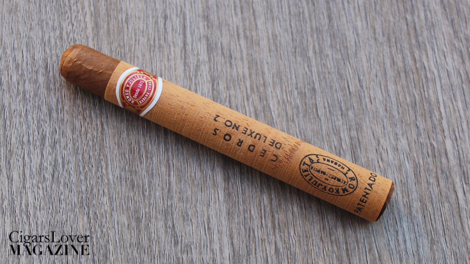The Romeo y Julieta Cedros de Luxe No. 2 is one of Habanos SA’s last Corona vitolas in their portfolio. It is part of a triptych of cigars numbered 1 to 3, but the No. 1 went out of production in 2017. It has the particularity, quite rare among the Cuban production, to be wrapped in a cedar sleeve, closed by the band which is affixed right on the sleeve instead of on the cigar.