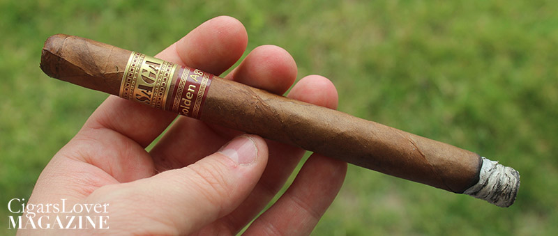 Saga Golden Age Lancero: the cold draw reveals hints of barnyard and dried mushrooms. The opening delivers soft wooden notes.