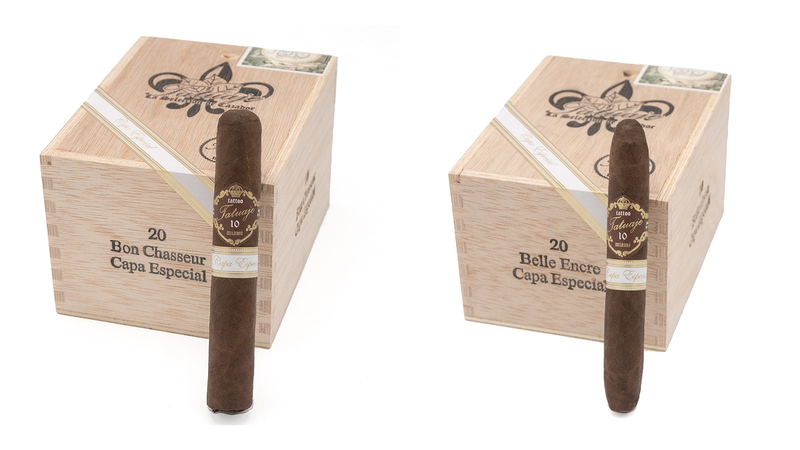 Tatuaje reveals a limited production run of their Belle Encre and Bon Chasseur sizes introduced in 2013 to commemorate the brand’s 10th anniversary. This time, it is wrapped in an Ecuadorian Sumatra leaf, or what the company calls Capa Especial. The secondary label with the Capa Especial name is something Tatuaje Cigars has used since 2011 for all releases using an Ecuadorian Sumatra wrapper.