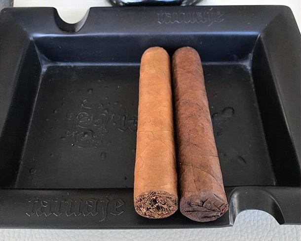 Both released in limited quantities (due to the Pelo de Oro, grown by the Garcia family, in the blend), as Robustos measuring 50 x 127 mm. The difference is the wrapper leaf and the closure of the foot: