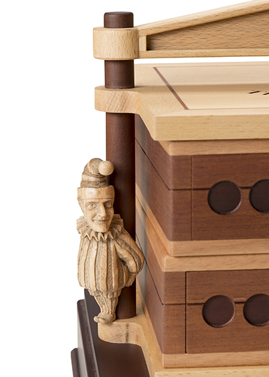 The retail price of the humidor, that also contains a humidification system, is 3’800 CHF. Surely a collectors piece that will attracted a lot of aficionados, for its form and its design, that definitely falls outside of the standard. The humidor imitates the press, that is used to compress the cigars and giving it its final form, before that they get dressed with the wrapper. Furthermore, the Punch puppet, positioned on one side, completes the opera.