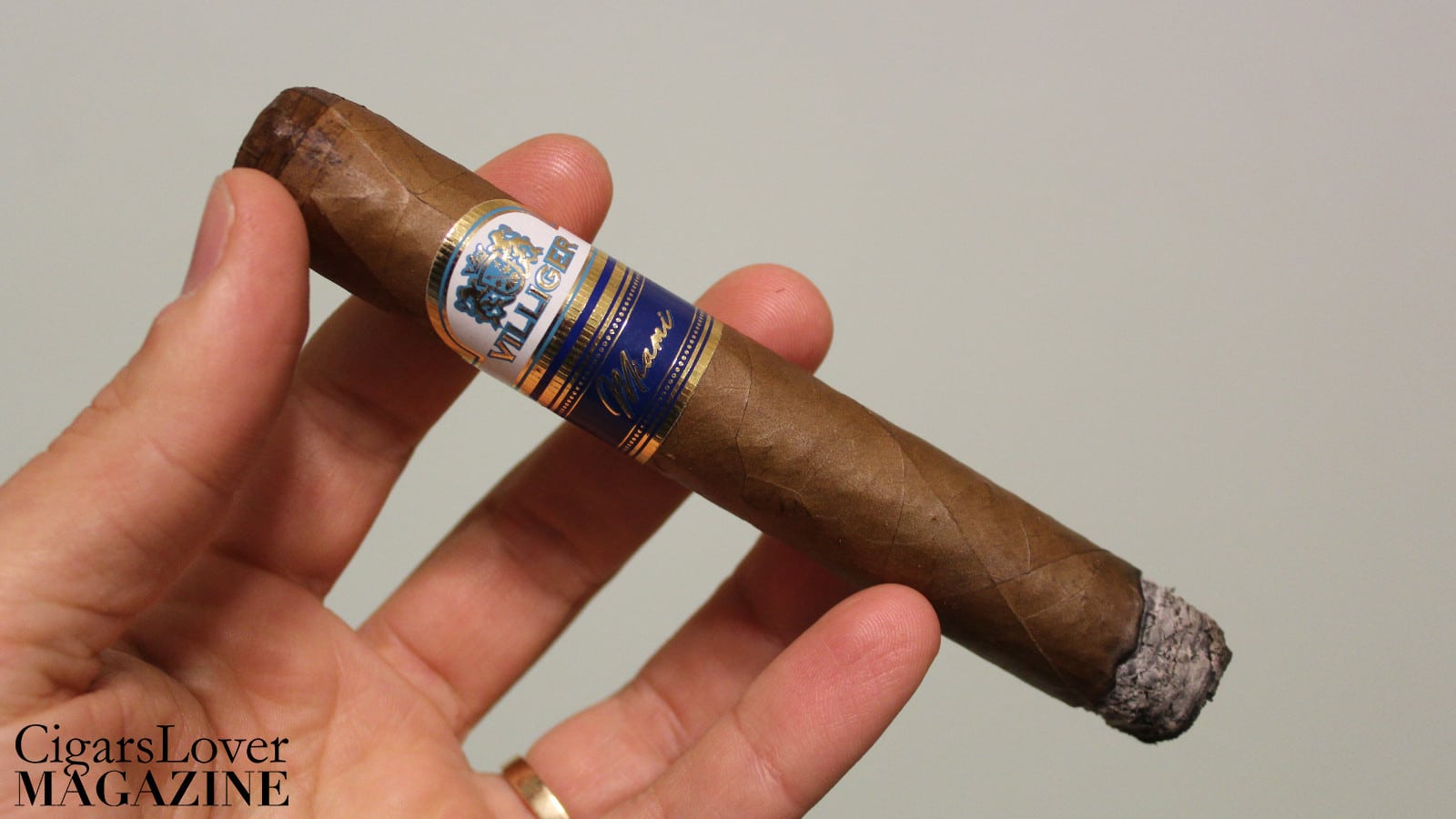 Villiger Miami 2023 Cañonazo: in the cold draw, notes of wood and nuts are perceptible, followed by nuances of hay.